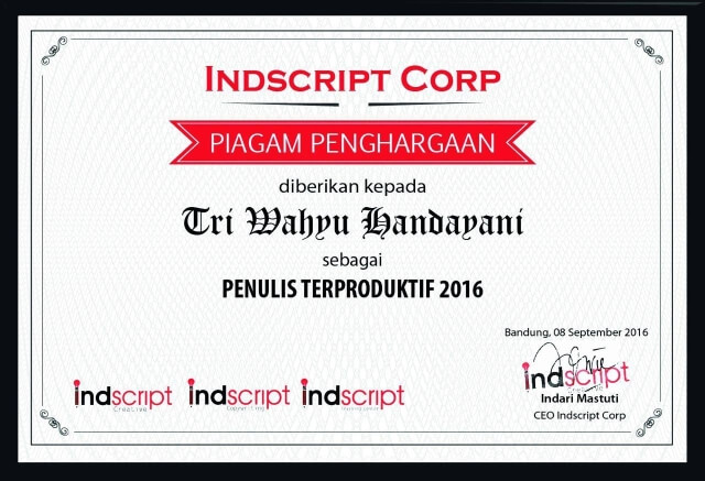melalui Indscipt Creative menjadi penulis terproduktif 2016