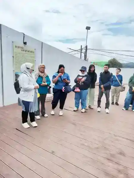 alun-alun lembang dan grup walking tour menyimak penjelasan pemandu