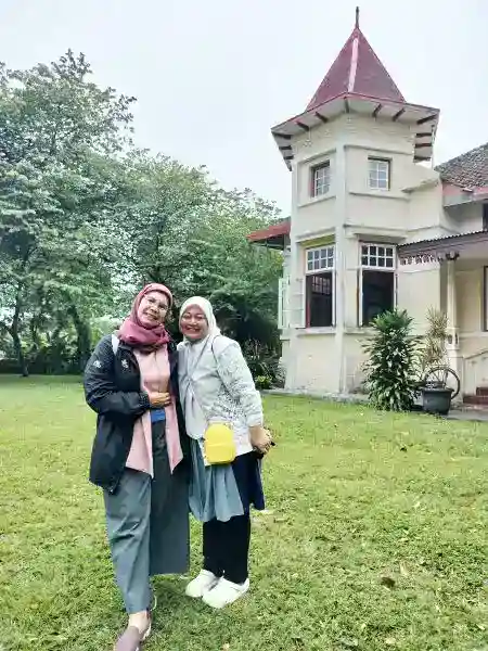 Sambil menunggu rombongan walking tour dari Jakarta, saya pun berjumpa dengan Teh Malia, pemandu kami nanti. Teh Malia, asli Lembang, peneliti dan penulis buku tentang Lembang. Artikel-artikelnya tentang Lembang, bisa dibaca di website bandungbergerak.id. Kami berbincang hangat, melepas kangen, setelah beberapa tahun tidak bertemu, mengenang beberapa walking tour tahun-tahun sebelumnya di grup yang berbeda.
