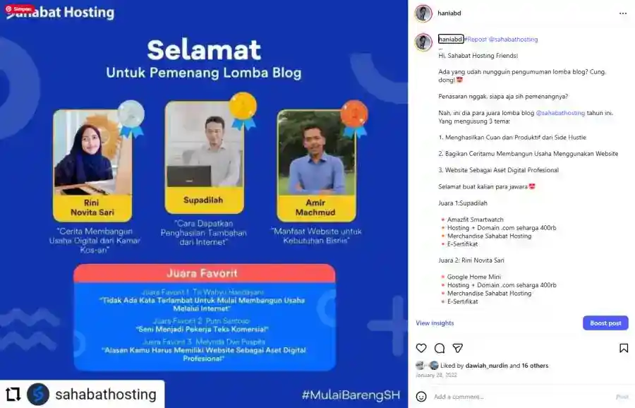 Perjalanan ngeblog 10 tahun yang lalu tersebut mengingatkan saya serunya blogger-blogger mengadakan giveaway. Tentu saja saya tertarik untuk ikut, bahkan pernah juga mengadakan giveaway sendiri yang temanya tentang Instagram.